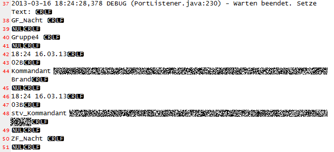Ein Lösungsansatz wäre aus meiner Sicht, dass CR LF (\r\n) mit ausgewertet wird und als Trennzeichen fungiert. Hier muss dann aber auch der DME-Listener für jede Auswertung zwischen den Zeichen einen Alarm anlegen. Jetzt wird derzeit ein Alarm angelegt (im Server) jedoch alle Fixtexte (Pipelines) gefunden.
