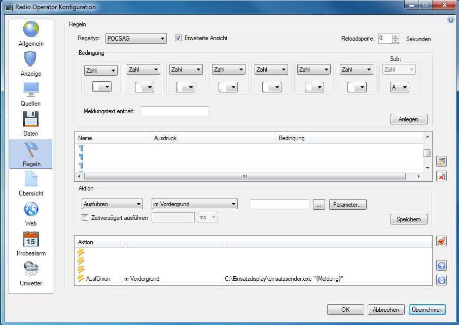 Mach doch einfach ein Screenshot vom RO (dem Fenster wo du das Einsatzdisplay aufrufst -> Regeln) und setze den hier rein. Wichtige Sachen halt unkenntlich machen.