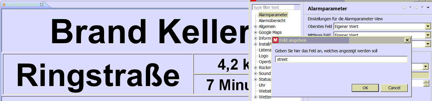 Also es gibt ja 3 Alarmparameterzeilen im AM. In der zweiten möchte ich die straße (street) und daneben die hausnummer (home).