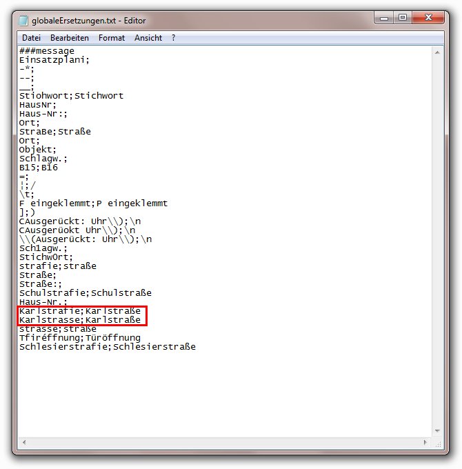 Beim Kartenauschnitt springt er gleich auf das richtige Gebäude. Nur beim Straßennamen schreibt er immer "Karlstrafie" anstatt "Karlstraße", obwohl ich es ja bei den globaleErsetzungen.txt und ersetzungen.txt eingegeben hab.