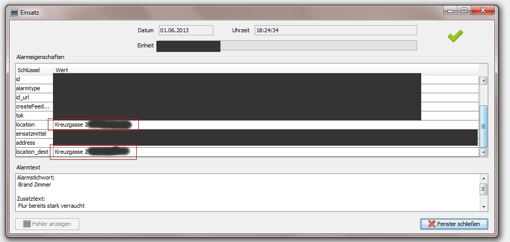 Also....im Alarmfax steht weder das Gebäude, noch die EPN drin.