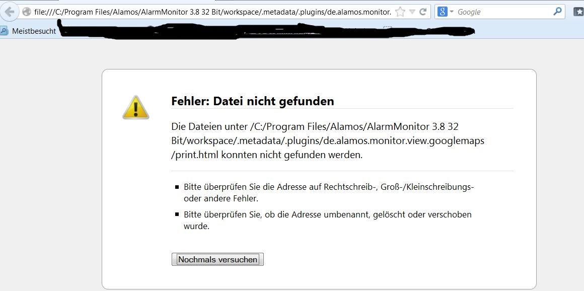 Bei einem Alarm öffnet sich Firefox, er findet keine print.html, im Ordner ...\workspace\...\...view.googlemaps ist auch keine.