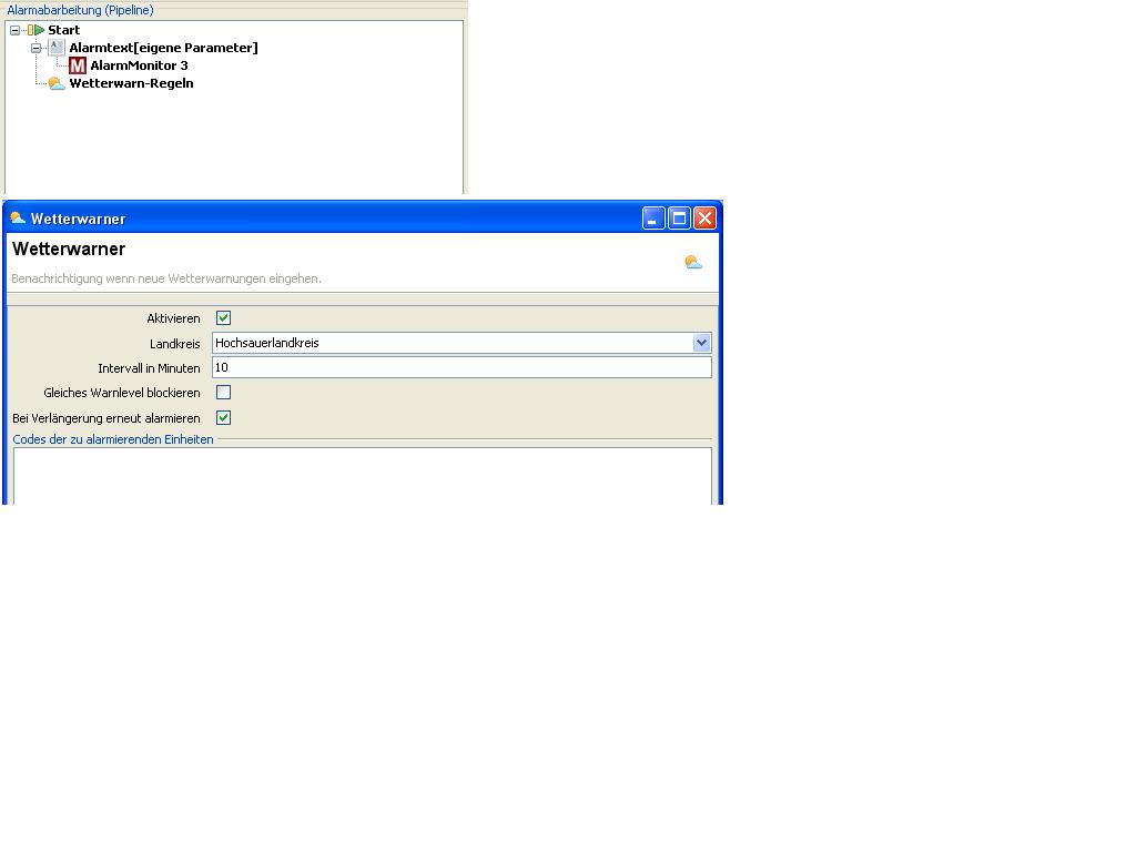 Muss man es unbedingt im Alarmablauf an den Alarmmonitor übergeben? Ich will ja keinen Alarm, sondern nur die Wetterwarnung angezeigt bekommen.