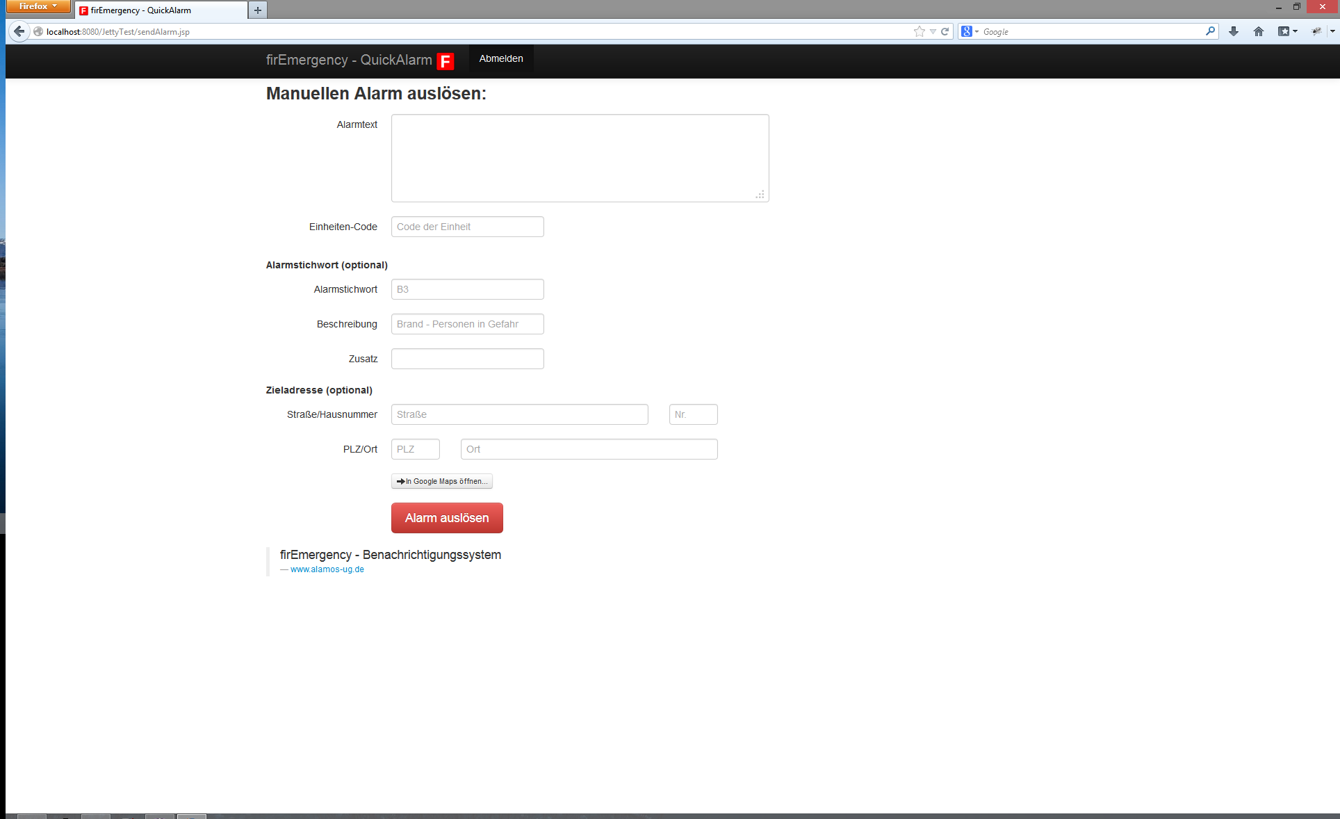Damit ist es möglich einen manuellen Alarm von überall im Browser auszuführen.
