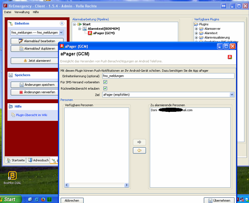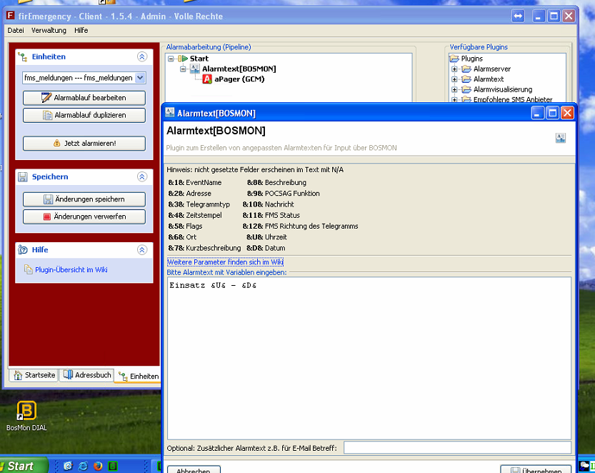Vor dem APager Plugin einen Alarmtext stehen?