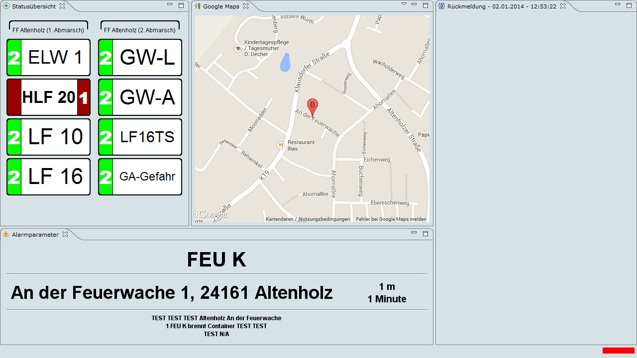 Ich habe mal 2 Masken beigefügt, einmal wie bei uns die Ruheseite aussieht und die Alarmseite. In der Alarmseite ist die angesprochene Grafik der Fahrzeuge zu erkennen.