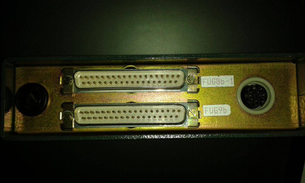 Auf der Rückseite je ein Sub-D-Anschluss für FuG8b1 und FuG9b. Außerdem eine runde DIN-Buchse.