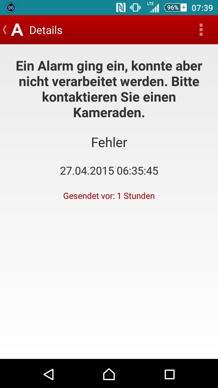 2 Kameraden haben mich angesprochen dass sie bei den letzten Alarmen gestern und vorgestern eine Fehlermeldung (siehe Anhang) bekommen haben. Ein weiterer Kamerad hat ebenfalls keine Alarme bekommen (2mal).
