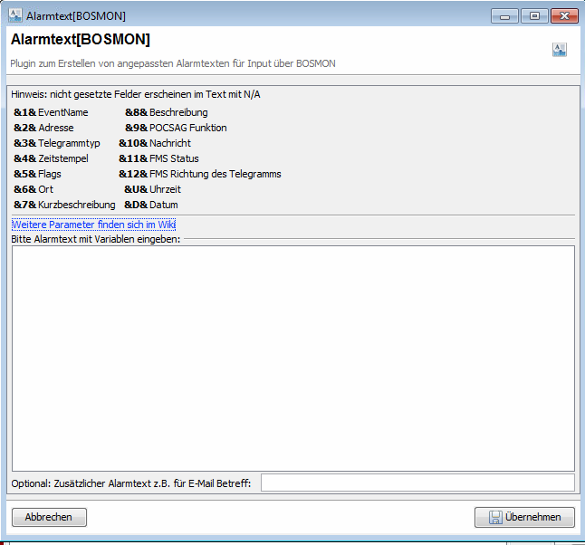 Nun zu meinem Problem, bei Alarmierung übergibt BosMon die empfangenen Daten an FE weiter, im server sehe ich das FE einen Einsatz schaltet, AM3 diesen aber nicht empfängt bzw sich nicht rührt, ich vermute das FE nicht richtig erkennt an welcher stelle im Text Stichwort etc. stehen.