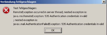 21.04.2015 - 12:11:28.211 ERROR Launcher - Email konnte nicht versandt werden: 535 Authentication credentials invalid