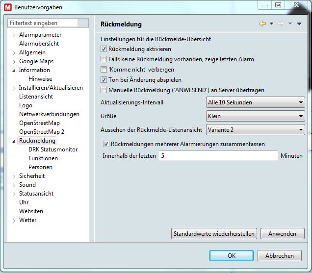 Auf dem Alarmmonitor erscheinen nur vereinzelte Feedbacks. Von rund 25 Rückmeldungen werden nur sehr wenige angezeigt. Ich habe im AM keine Gruppen definiert und ihn so konfiguriert, dass er auch "Komme nicht" anzeigen soll.