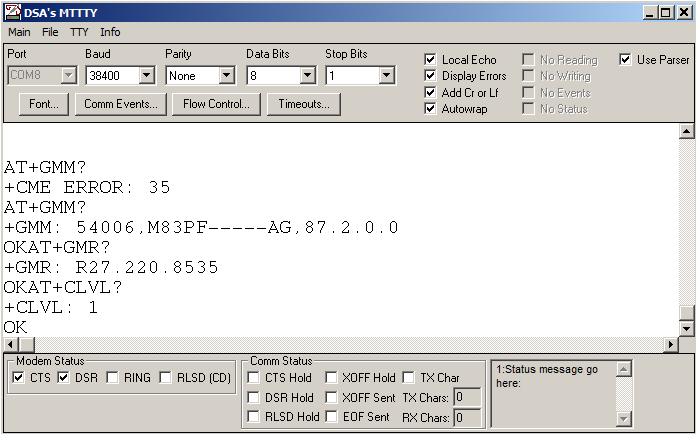 Eigentlich recht es, z.B. MTTTY oder Realterm, Port einstelle, Baud-rate und ATE1 für Echo Anzeige eingeben, nun sollte, wenn das Endgerät richtig parametriert ist, das Terminalprogramm Betrieb machen.
