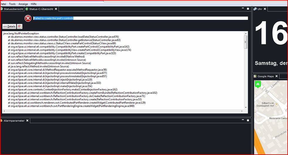 ich habe eben bemerkt, dass die Statusübersicht unseres Alarmmonitors nicht mehr funktioniert. Java meldet sich mit folgendem Text: