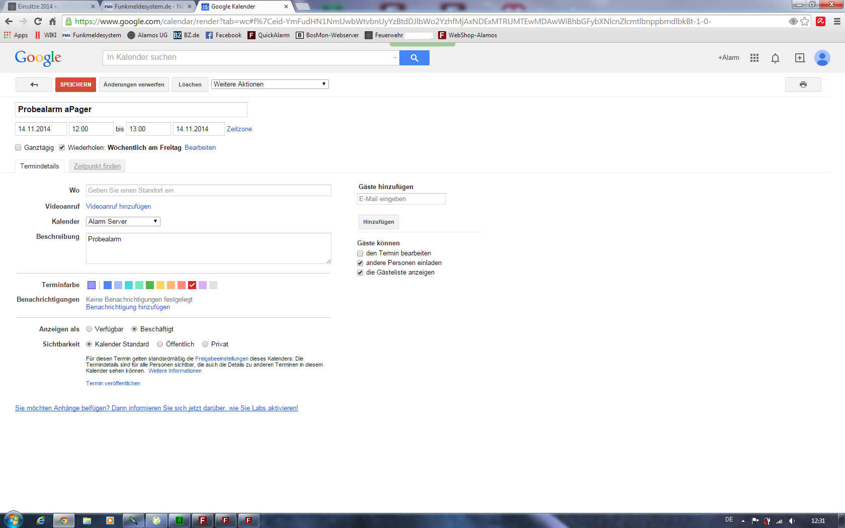 Ich habe im Kalender jeden Freitag um 12 Uhr ein Termin mit Probealarm hinzugefügt.