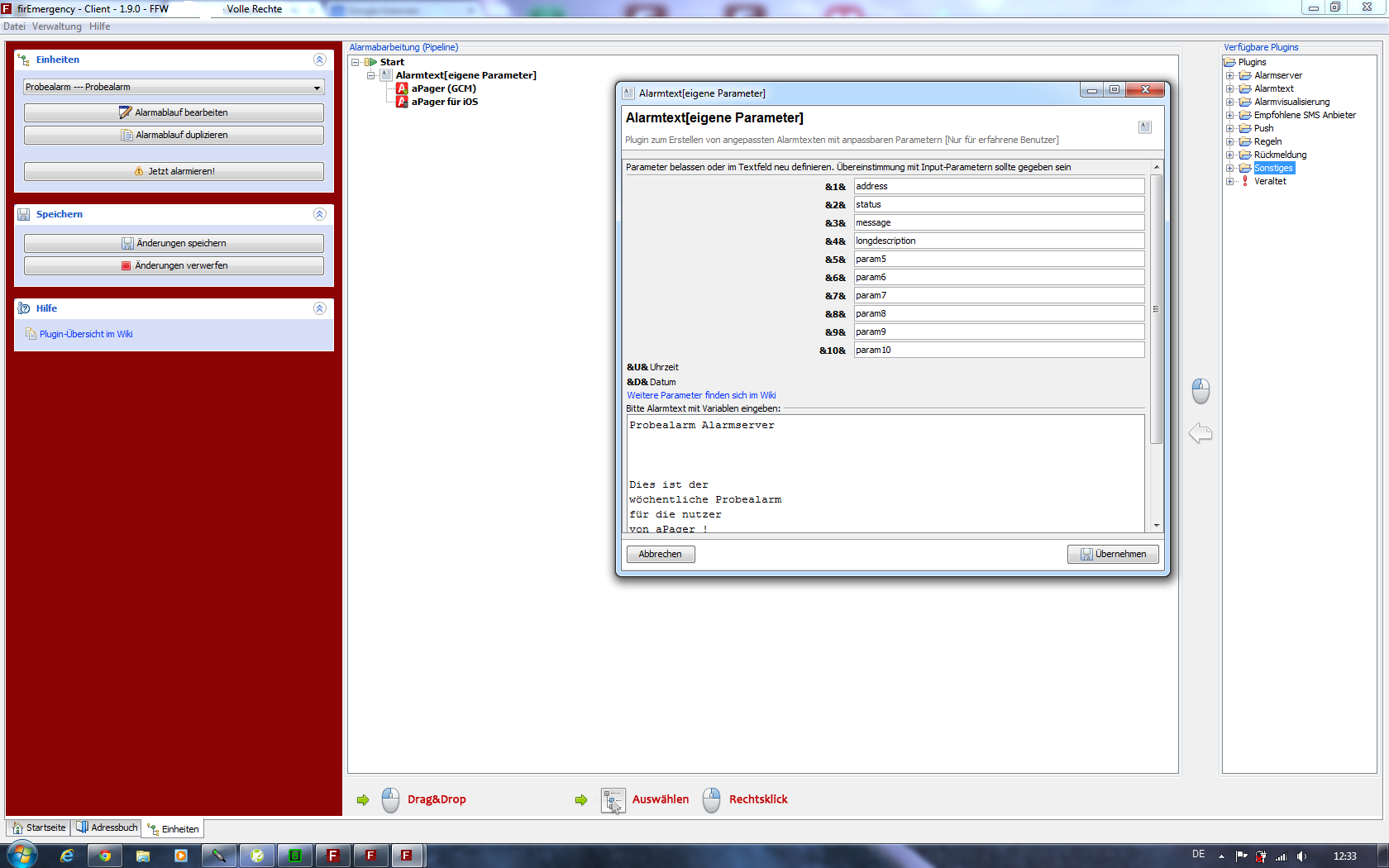 Beschreibung = Name der zu alarmierenden Einheit.