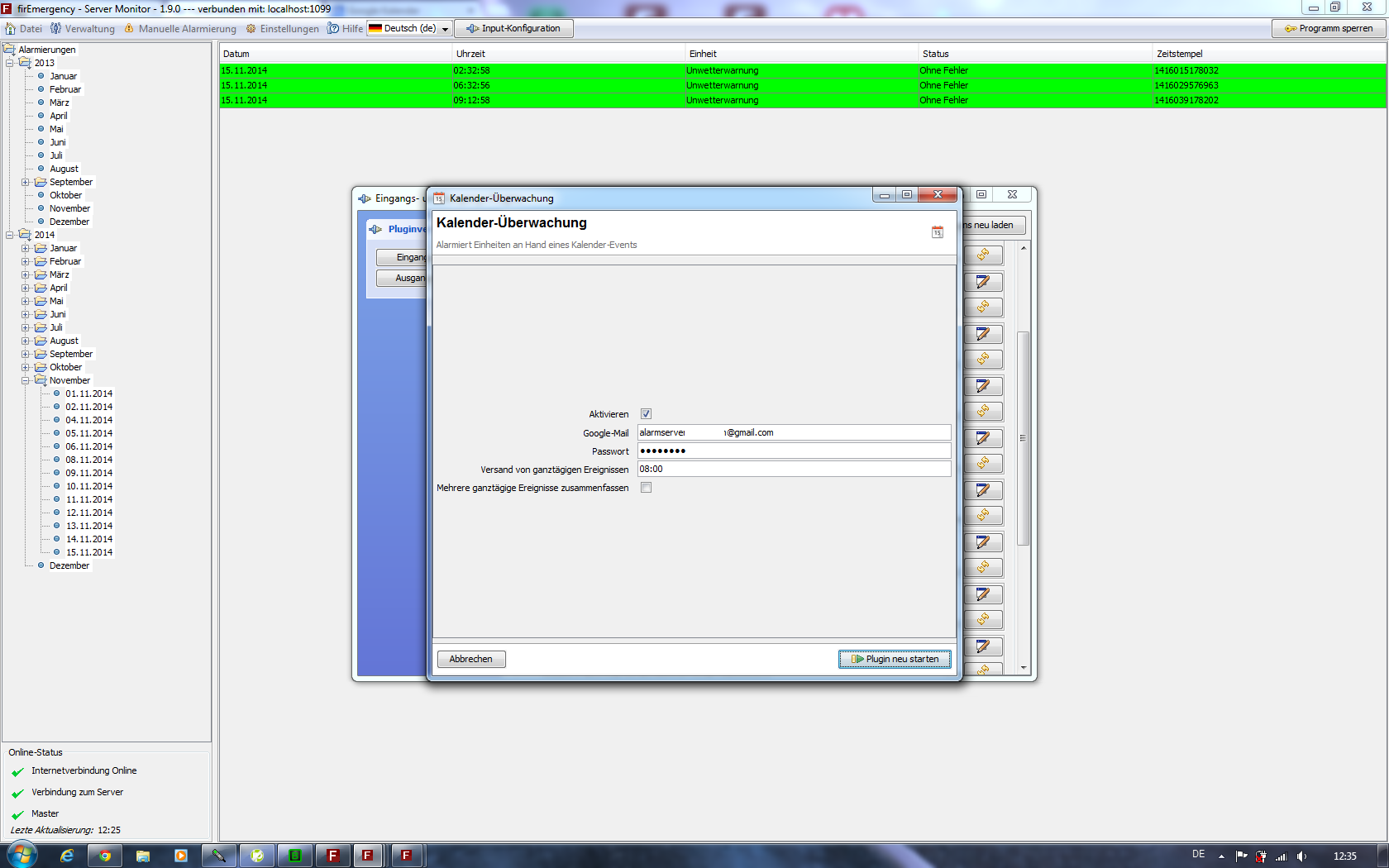ich habe ein Problem mit der Kalenderüberwachung.