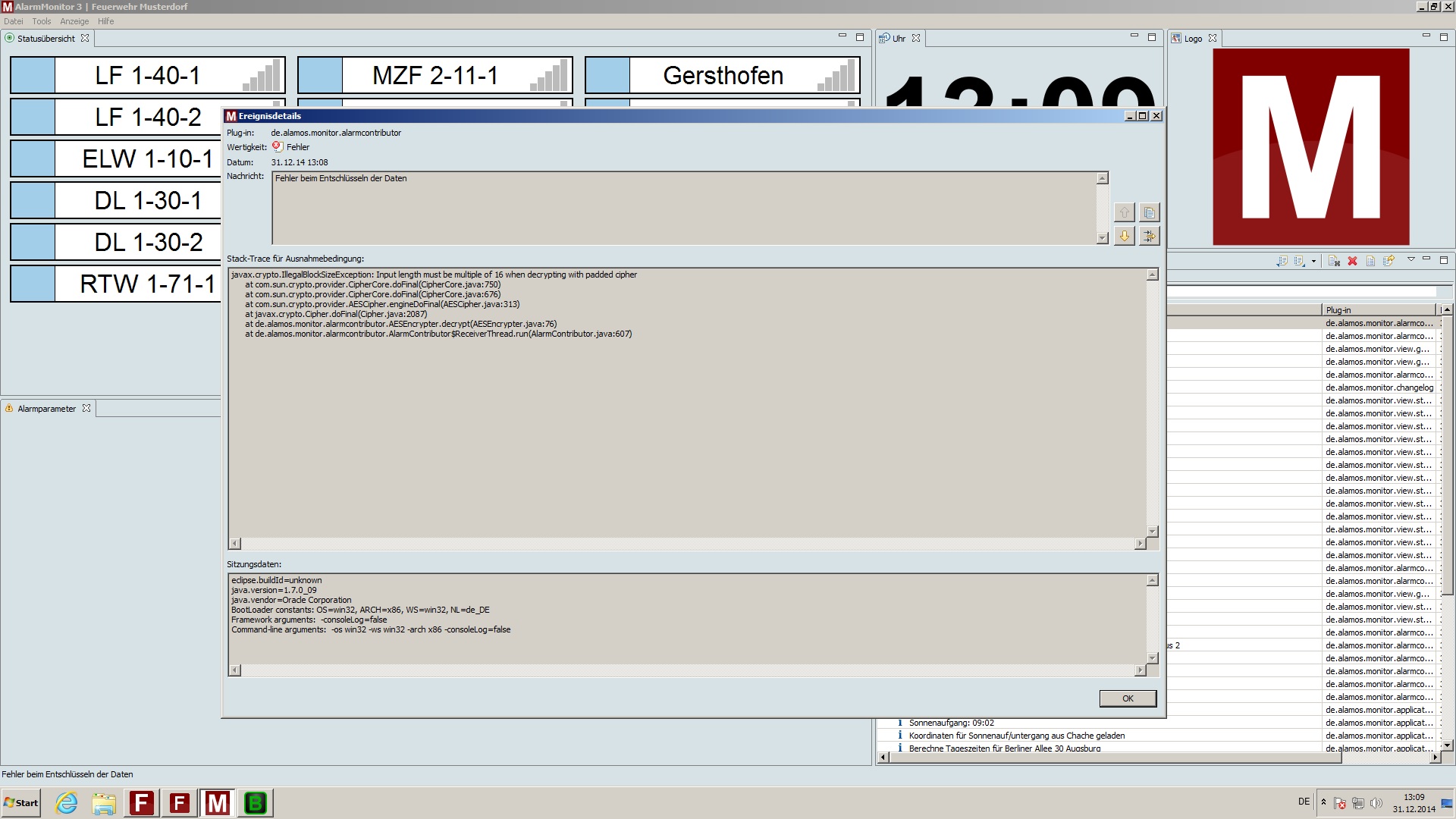 Die Auswertung der eingehenden Alarme funktioniert und anscheienend auch die Weiterleitung an firEmergency. Doch bei der Weiterleitung an den Alarmmonitor 3 kommt ständig folgende Fehlermeldung: