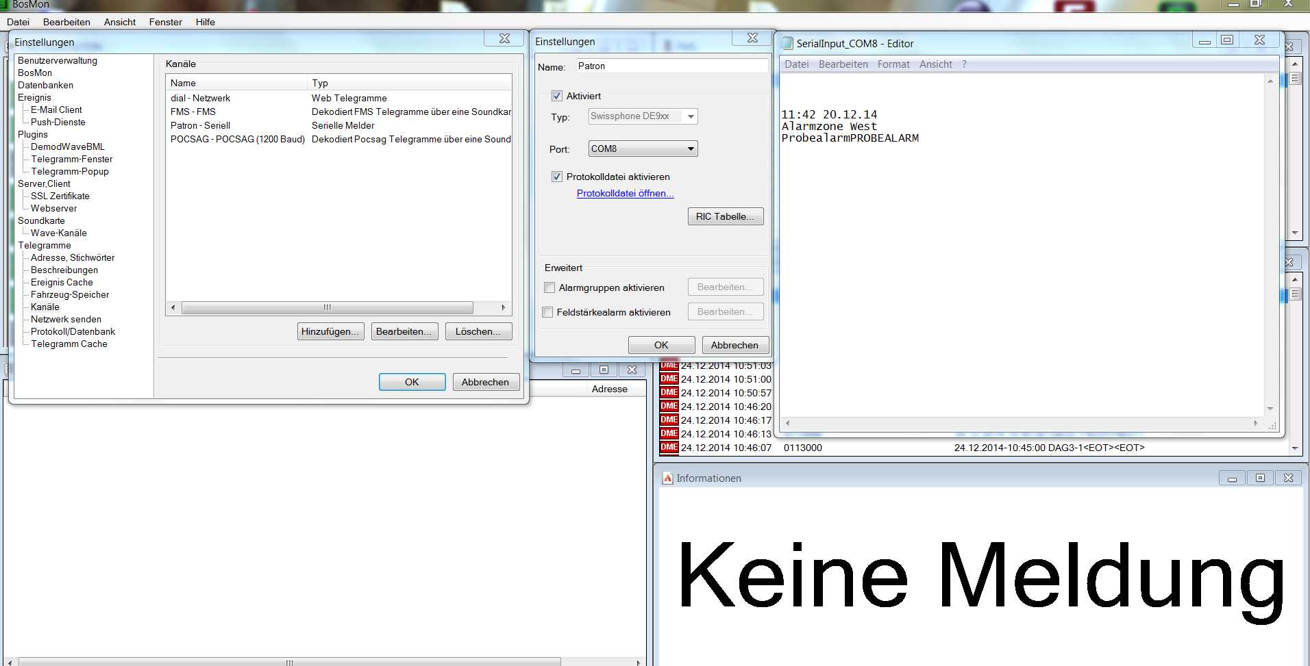 Wollte einen Patron mit BosMon nutzen. In der Logdatei kommt auch der Text vom Melder an. Allerdings auch bei mir nicht im Telegrammfenster.