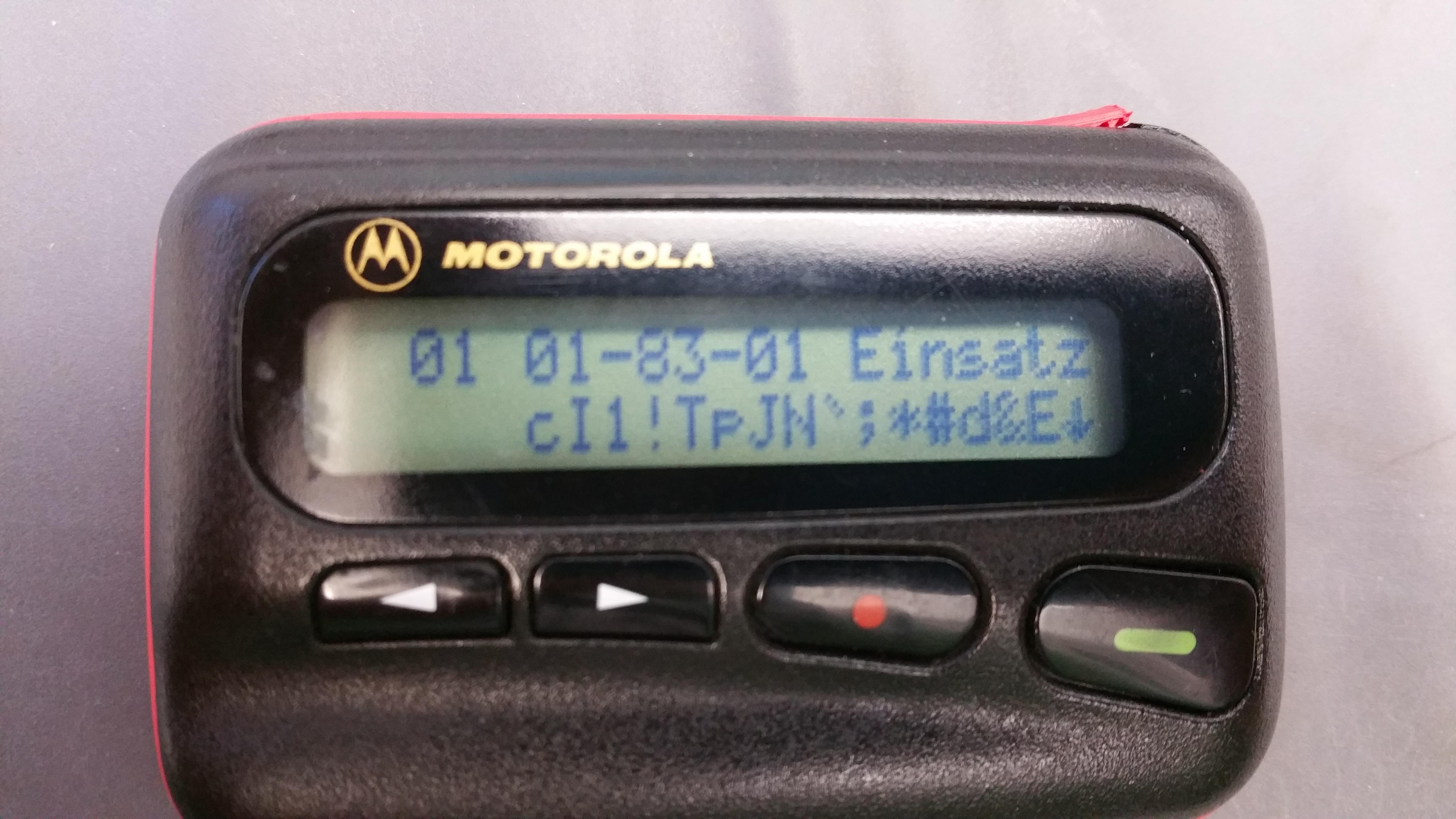 Der Melder zeigt (wie auf den Bildern zu sehen) bei der Alarmierung wohl den Fixtext an, aber die Alarmierung an sich besteht nur aus kryptischen Zeichen.