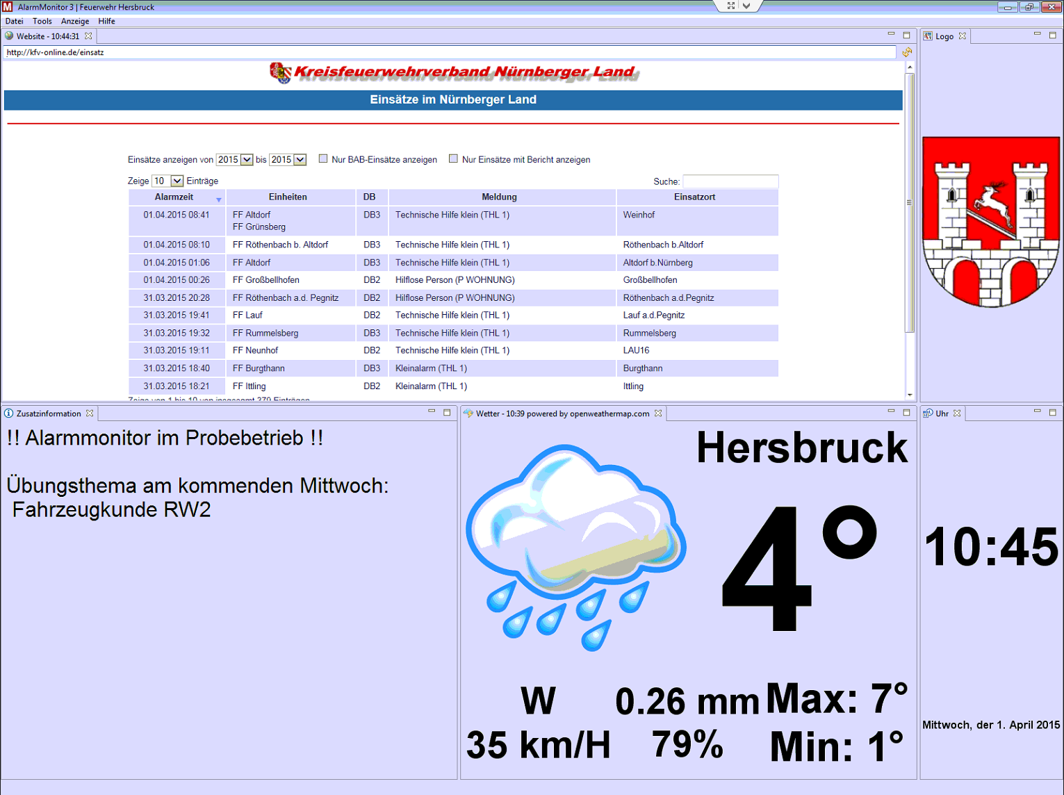 Im Moment sind wir echt begeistert von dem System! Das Backend ist sowohl über die Funkgeräte in der Einsatzzentrale als auch über das Alarmfax angebunden. Als Ausgabe haben wir natürlich zusätzlich zum Alarmmonitor einerseits die Zusatzalarmierung via aPager im Einsatz, als auch eine Ausgabe über einen Gong und einer Durchsage über die ELA in der Wache.