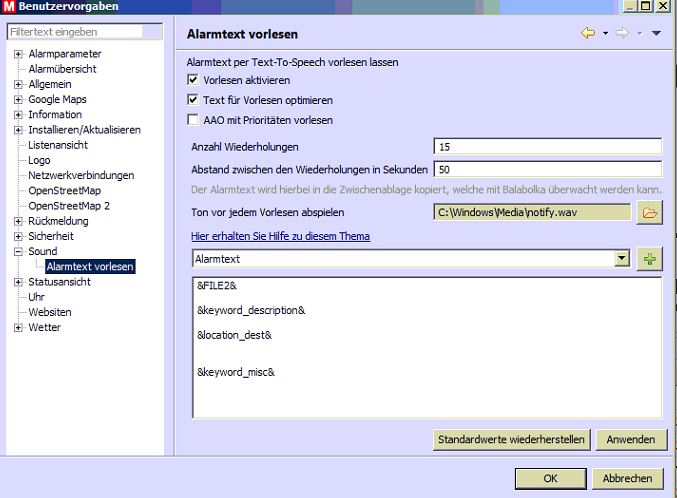 ich versuche derzeit, den Alarmtext vorlesen zu lassen - aber es passiert nichts.