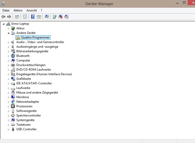 Im Gerätemanager des PC wird das Gerät als "Quattro Programmer" angegeben.