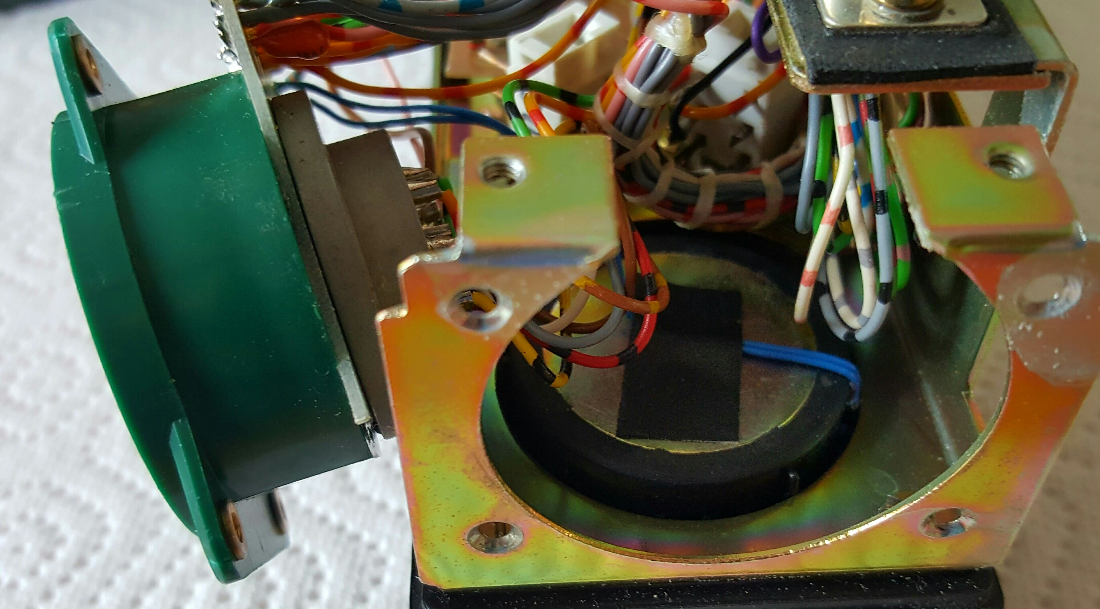 Die NATO-Buchse auf den Bildern bg1 und b2 ist schon ausgebaut, auf dem hier angehängten Bild bg3 sieht man sie noch in eingebautem Zustand. Direkt unter dieser Buchse sitzt der Lautsprecher des Bedienteils.