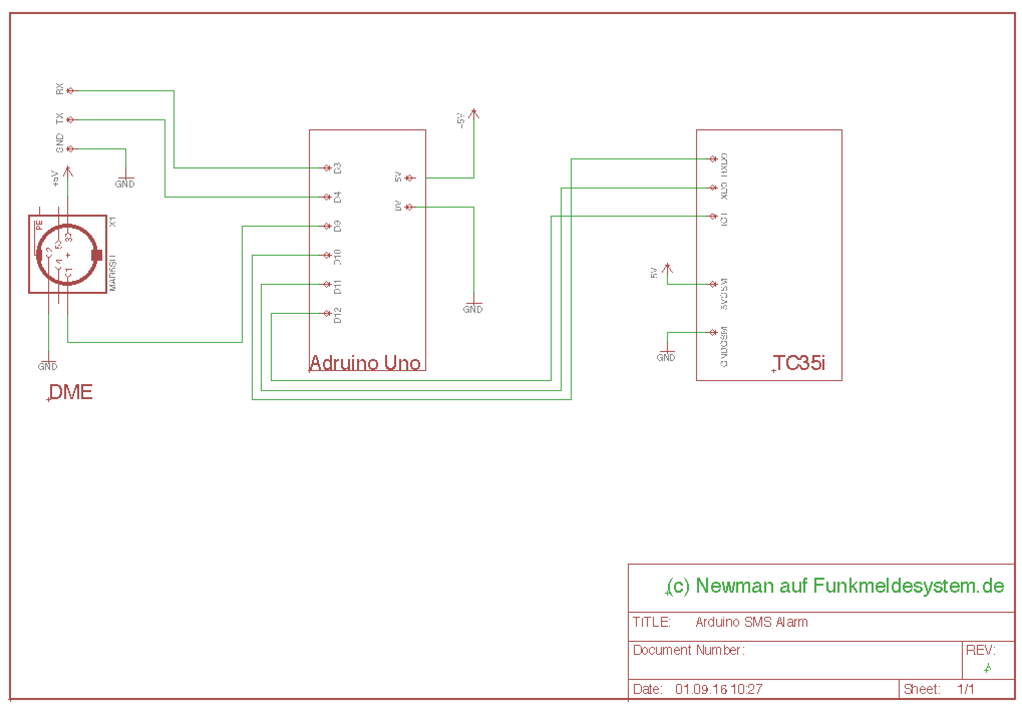 Da der Melder ohne eingelöteten MAX232 in der Ladestation ein TTL-Pegel (Meldung im ASCII-Format) ausgibt, kann die Station ohne weitere Elektronik direkt ans Arduino angeschlossen werden. Wiederum ist das Arduino voll kompatibel mit dem TC35i-Modem.