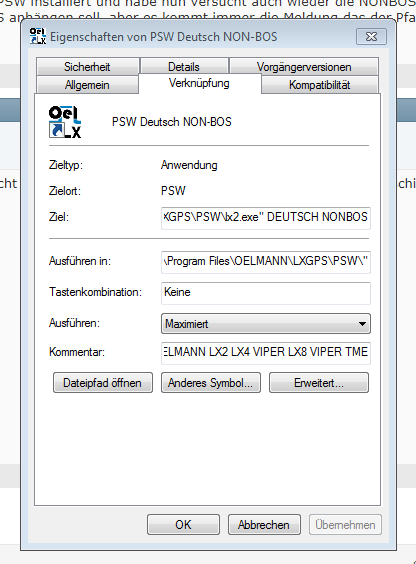 ich habe gerade die aktuelle Version der Oelmann PSW installiert und habe nun versucht auch wieder die NONBOS Version zu aktivieren. Leider bin ich für die Umsetzung der Anleitung wohl irgendwie zu blöd, sodass es nicht klappt. Hier steht ja, dass ich eine Verknüpfung anlegen soll und an den Pfad NONBOS anhängen soll, aber es kommt immer die Meldung das der Pfad ungültig ist. Kann mir irgendwer von euch einen Tip geben, wo das Kürzel hin muss, damit es klappt?
