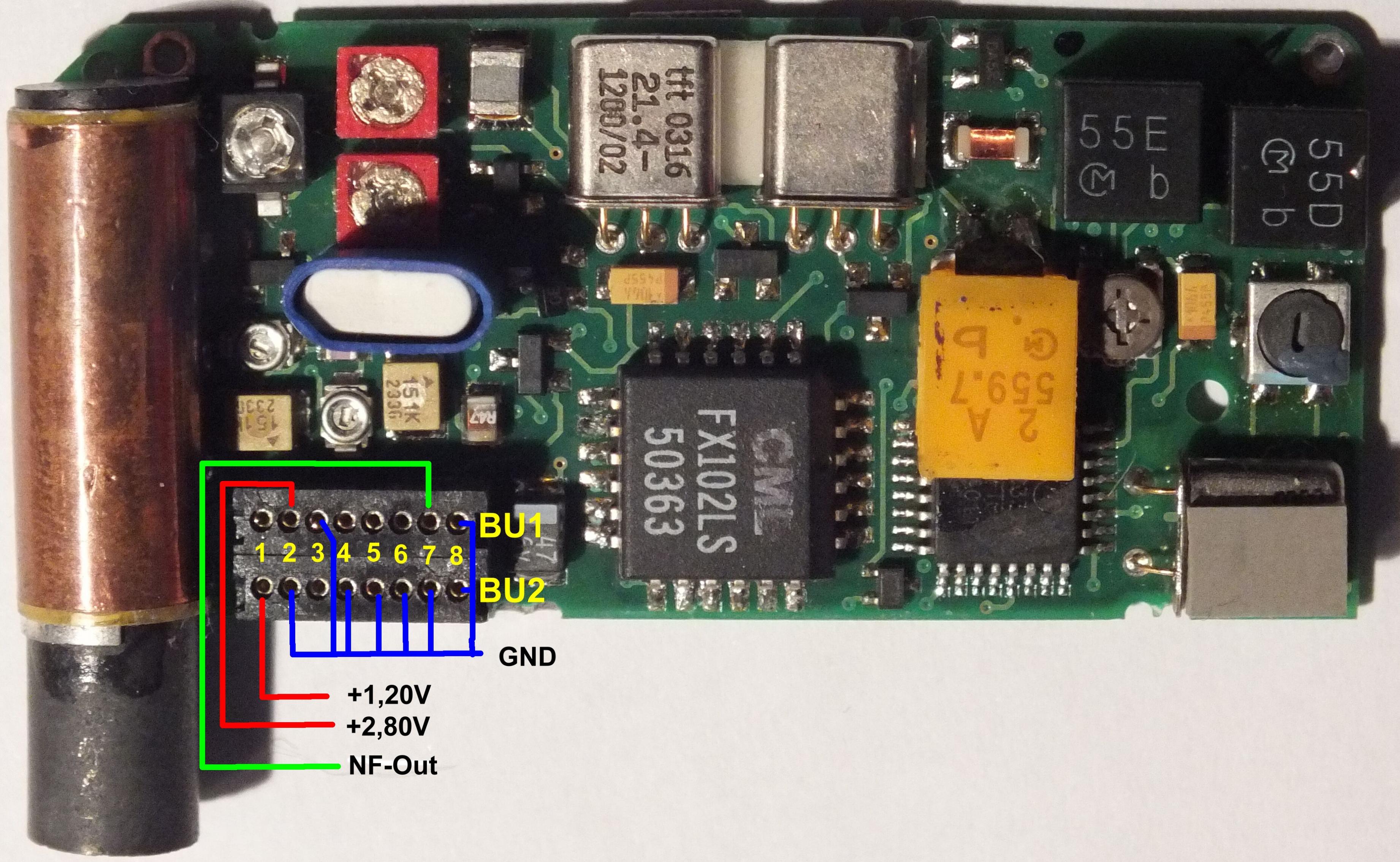 Am RF-Board an Bu1 Pin 7 +2,8V einspeisen, an Bu2 Pin 8 +1,25V einspeisen.