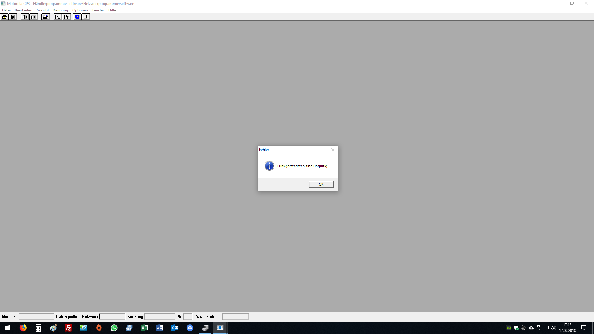 ich bekomme beim Programmieren den Fehler "Funkgeräte Daten sind ungültig"