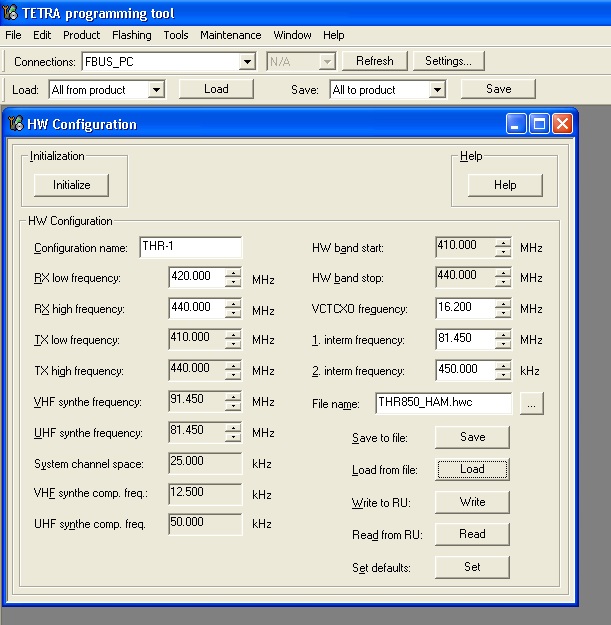 Ich habe ein Nokia THR850 (RC1, 410-430 MHz, ehem. Dolphin) und einen "technischen" LPT-Schlüssel der die Engineering-Einstellungen in EADS TETRA Programming Tool (Phoenix) ermöglicht.