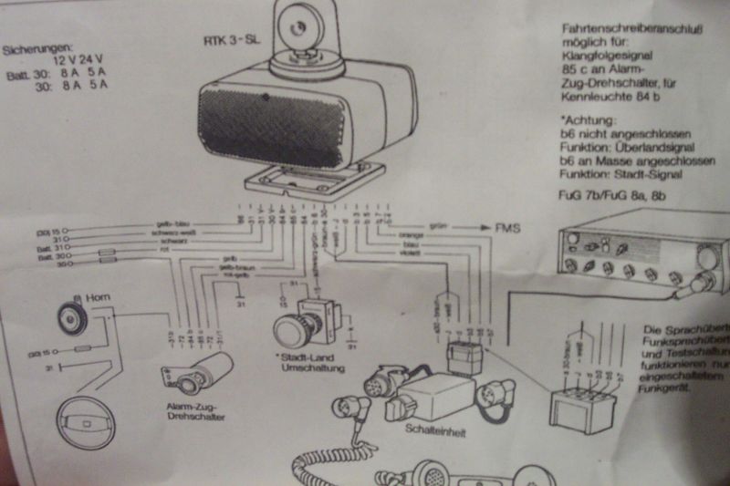 Mit einem Schaltplan der RTK 3 kann ich Dir zwar nicht weiterhelfen, habe aber einen von der RTK 4. Vom Anschluss und den Kabelfarben her sind die beiden Modelle was Blaulicht, Tonfolge und Kontrollampen her angeht identisch.