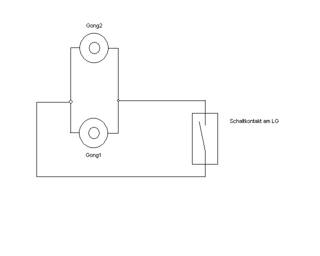 Meine Gongs sind verdratet wie es die Zeichnung von Quietschephon zeigt! Wie der Schaltkontakt bei den Gongs gelöst ist kann ich dir momentan nicht sagen. Es ist ein ganz normaler 3-Klang Gong aus dem Baumarkt!