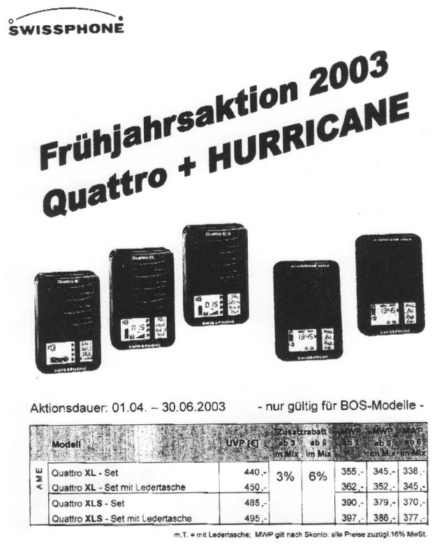 Alter Quattro XL wird abverkauft. Preise bleiben wie bei der Frühjahrsaktion.