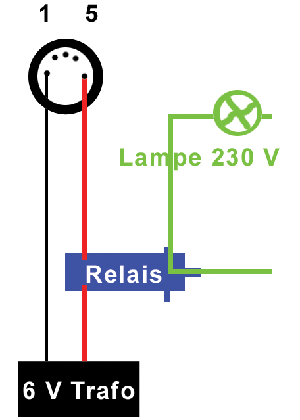 nun bin ich nicht der elektriker, aber wenn ich das richtig verstehe, hat meinen Ladestatin (Motorola Scriptor) ein Relais in der DIN-Buche 1 (Masse) und 5 (Schaltung). Da man ja nicht direkt 230V draufgeben kann, würde ich gerne ein Relais vorschlten. DIes hat 6V zum ansteueren und kann dann 230V schalten. Also lege ich die 6V vom Trafo den Minuspol an die masse Pin 1 und den Pluspol an die Schaltung Pin 5 und dazwichen das Relais.